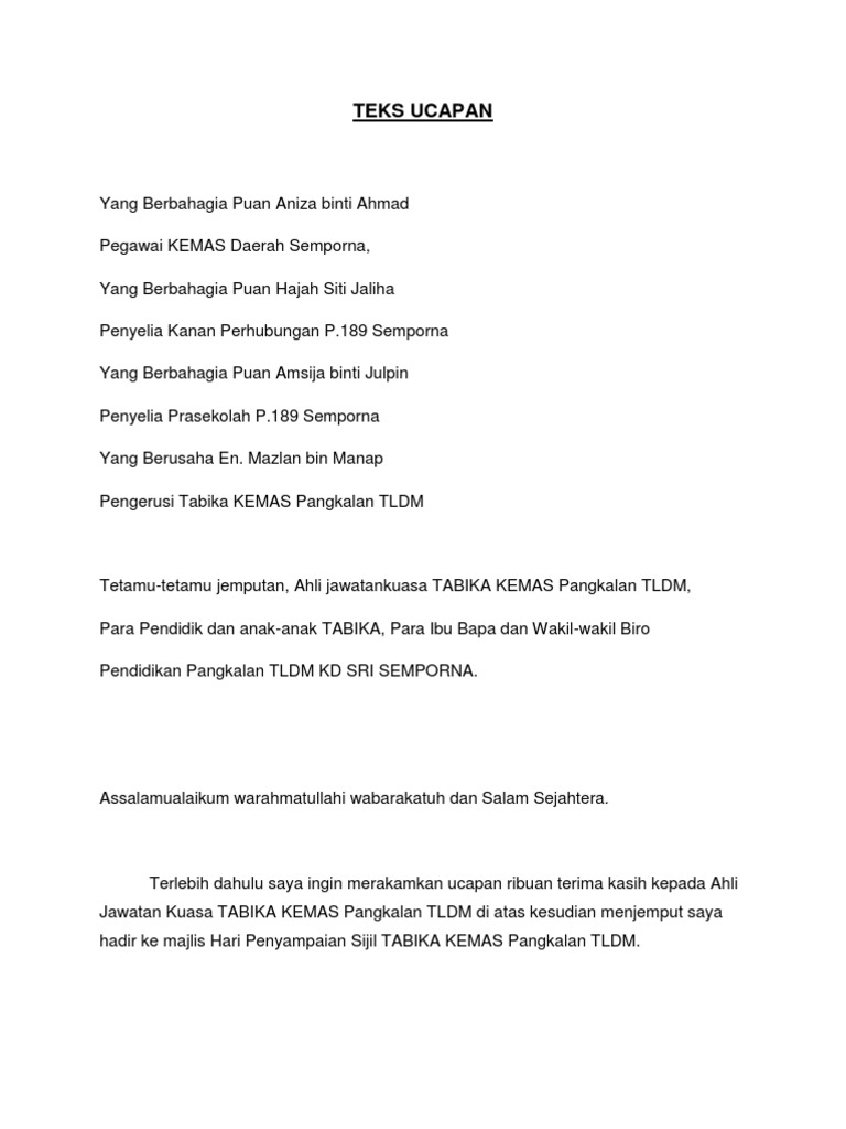 Doc Teks Ucapan Pengerusi Majlis Ceramah Agama Docx Dr Muhammad Nur Azimi Azizan Academia Edu.